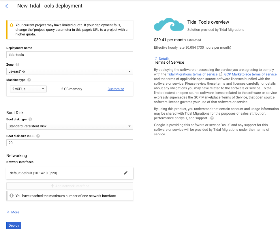 Starting at the Tidal Tools page in Google Cloud Marketplace, click the
